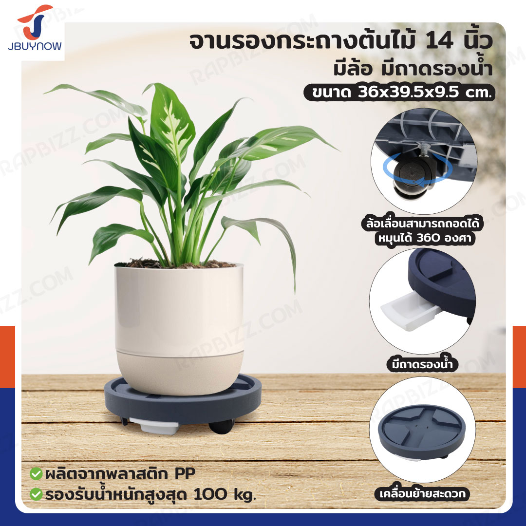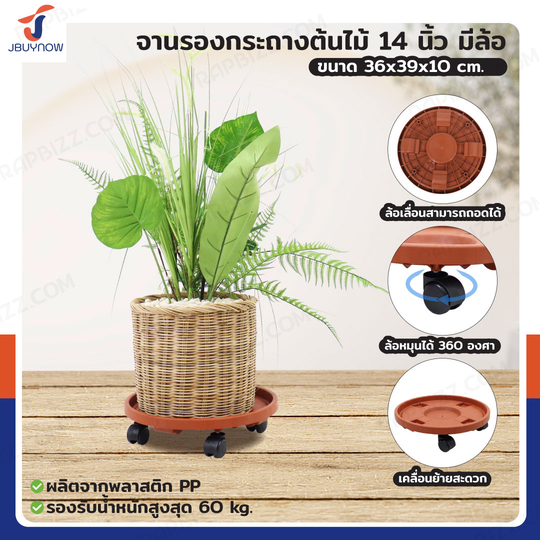 จานรองกระถางต้นไม้ 14 นิ้ว มีล้อ/มีถาดรองน้ำ Load 100 kg.