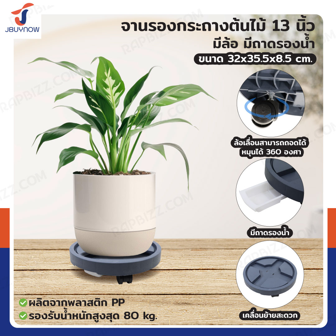 จานรองกระถางต้นไม้ 13 นิ้ว มีล้อ/มีถาดรองน้ำ Load 80 kg.