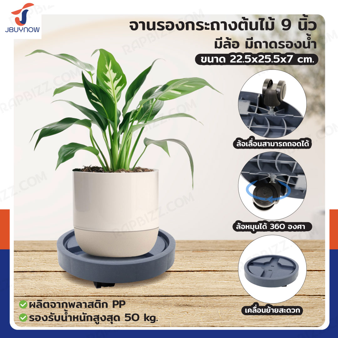 จานรองกระถางต้นไม้ 9 นิ้ว มีล้อ/มีถาดรองน้ำ Load 50 kg.