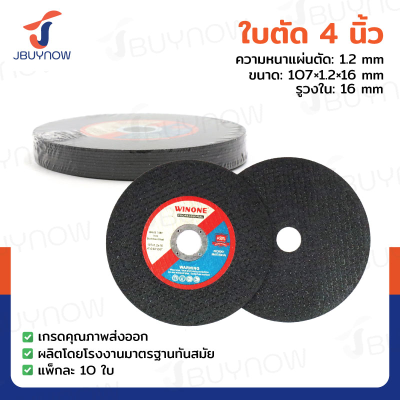 ใบตัดสแตนเลส 4 นิ้ว (คลาสสิก) สีดำ แพ็คละ 10 แผ่น JBUYNOW TG-001/PACK