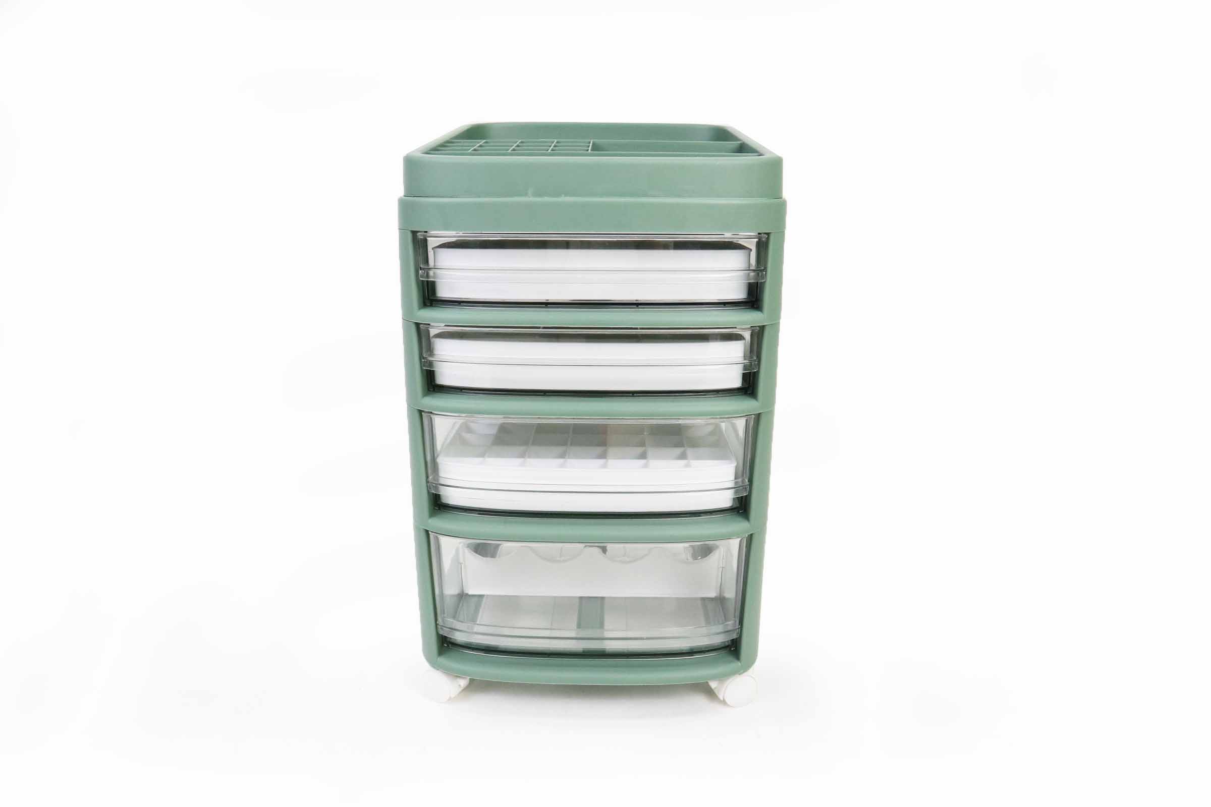 ลิ้นชักเก็บเครื่องสำอาง ชั้น เก็บของ 4 ชั้น มีล้อ 28x34x43 ซม. สีเขียว ST211038GR