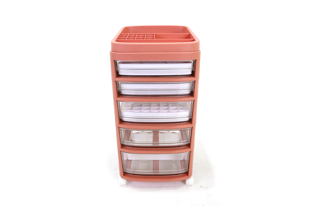 ลิ้นชักเก็บเครื่องสำอาง ชั้น เก็บของ 5 ชั้น มีล้อ 28x34x58 ซม. สีชมพู ST211039PI