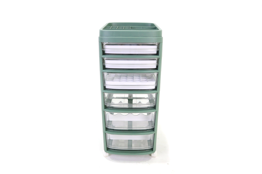 ลิ้นชักเก็บเครื่องสำอาง ชั้น เก็บของ 6 ชั้น มีล้อ 28x34x71 ซม. สีเขียว ST211040GR
