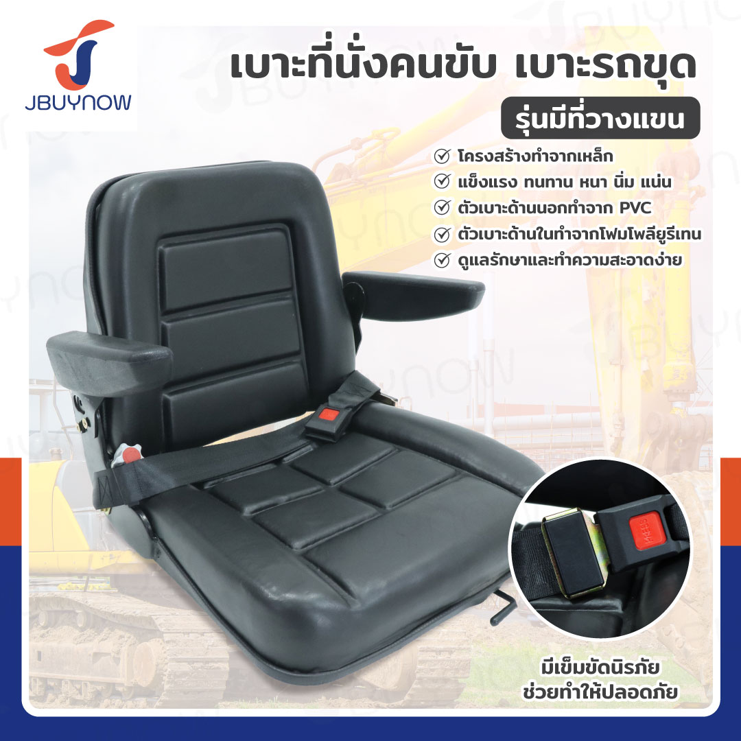 Universal Forklift Seat เบาะที่นั่งคนขับ เบาะรถขุด เบาะรถโฟล์คลิฟท์ รุ่นมีที่พักแขน JBUYNOW RB24021