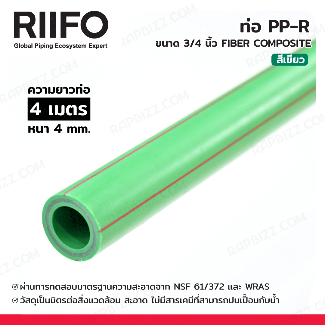 RIIFO ท่อ PP-R ขนาด 3/4 นิ้ว ยาว 4 เมตร สีเขียว FIBER COMPOSITE 000160008