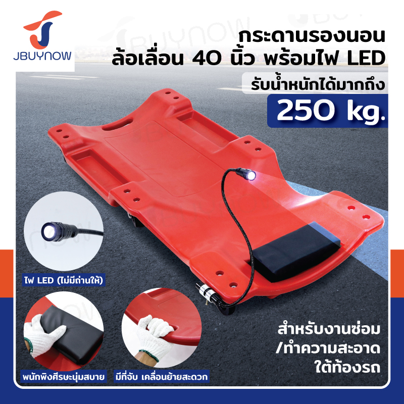กระดานซ่อมรถ กระดานรองนอนล้อเลื่อน 40 นิ้ว พร้อมไฟLED สีแดง JBUYNOW RB240115-16