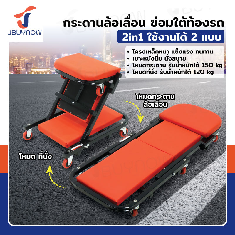 กระดานซ่อมรถ กระดานซ่อมใต้ท้องรถ 2IN1(แบบปรับนั่งได้) สีแดง JBUYNOW RB240115-1