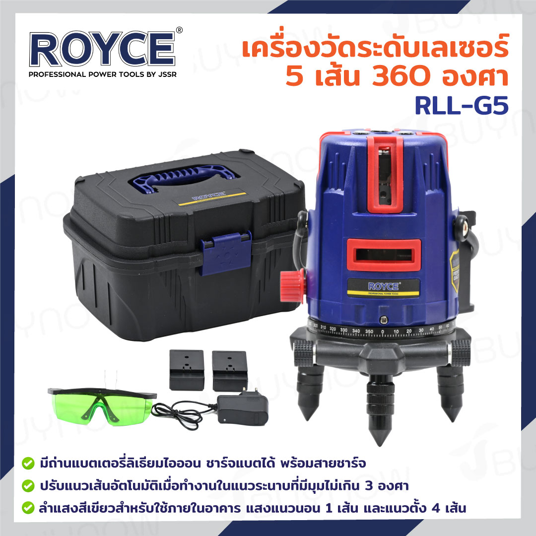 ROYCE เครื่องวัดระดับเลเซอร์ 5 เส้น 360 องศา RLL-G5