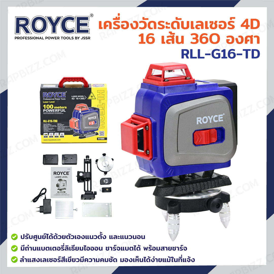 ROYCE เครื่องวัดระดับเลเซอร์ 4D 16 เส้น 360 องศา RLL-G16-TD
