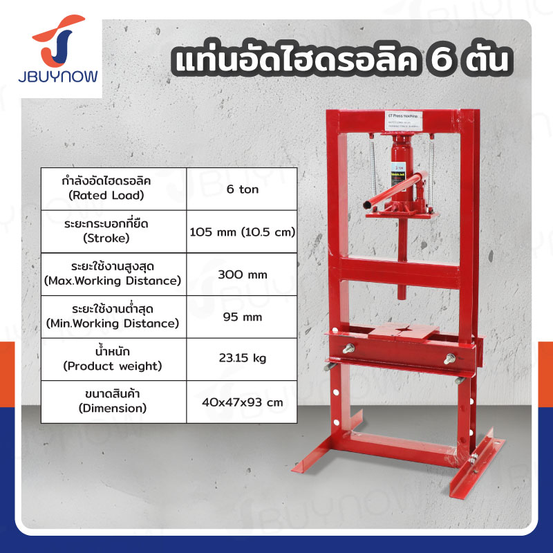 แท่นอัด ไฮดรอลิก 6 ตัน สีแดง รุ่น Heavy duty