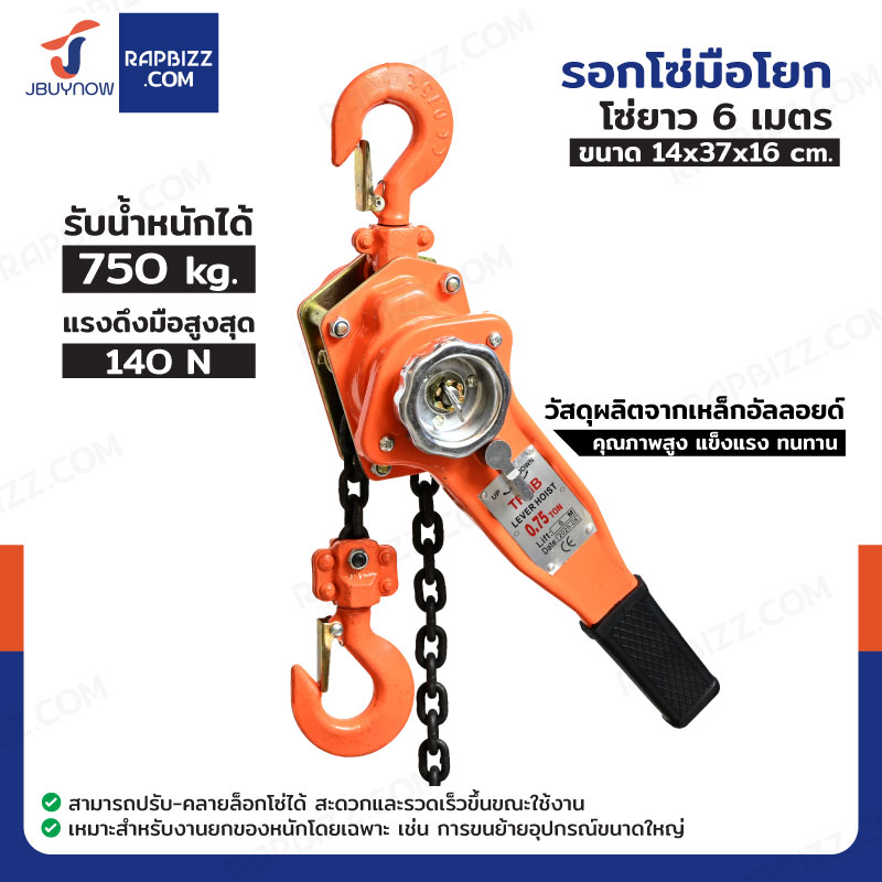 TRHB รอกโซ่มือโยก รอกกำมะลอ 750 KG โซ่ยาว 6 เมตร