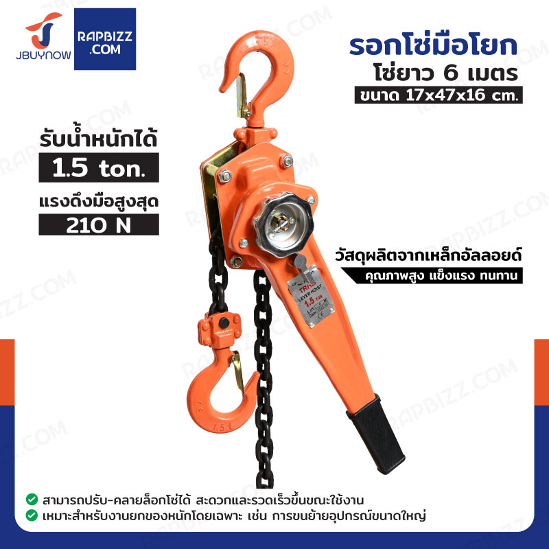 TRHB รอกโซ่มือโยก รอกกำมะลอ 1.5 ตัน โซ่ยาว 6 เมตร