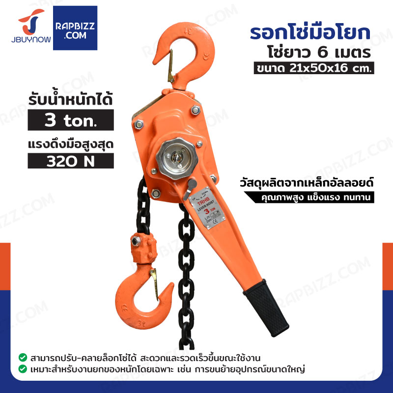 TRHB รอกโซ่มือโยก รอกกำมะลอ 3 ตัน โซ่ยาว 6 เมตร
