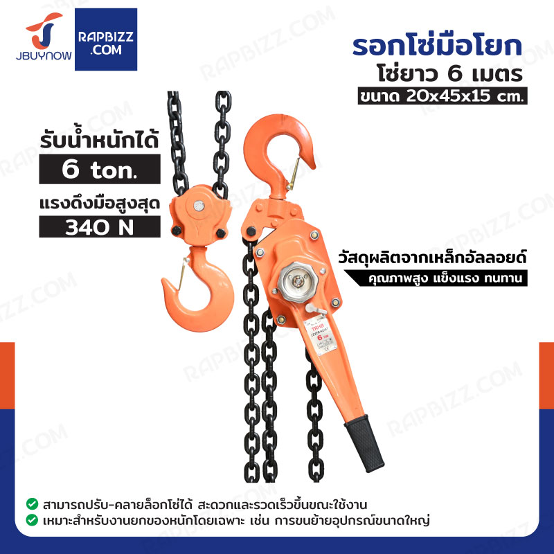 TRHB รอกโซ่มือโยก รอกกำมะลอ 6 ตัน โซ่ยาว 6 เมตร