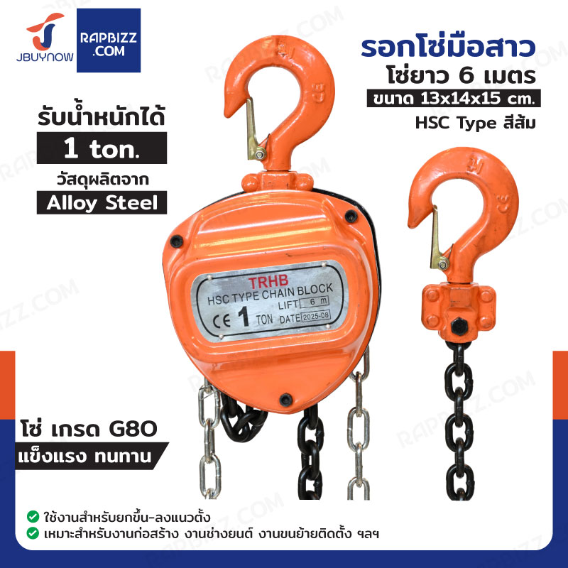 TRHB รอกโซ่มือสาว รอกสามเหลี่ยม 1 ตัน โซ่ยาว 6 เมตร HSC Type สีส้ม