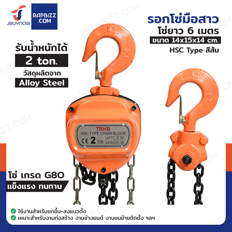TRHB รอกโซ่มือสาว รอกสามเหลี่ยม 2 ตัน โซ่ยาว 6 เมตร HSC Type สีส้ม
