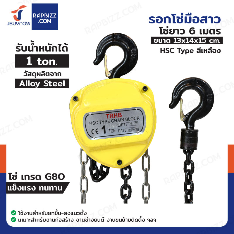 TRHB รอกโซ่มือสาว รอกสามเหลี่ยม 1 ตัน โซ่ยาว 6 เมตร HSC Type สีเหลือง