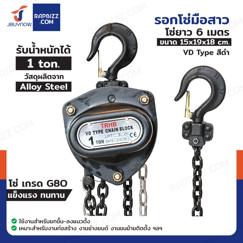 TRHB รอกโซ่มือสาว รอกสามเหลี่ยม 1 ตัน โซ่ยาว 6 เมตร VD Type สีดำ