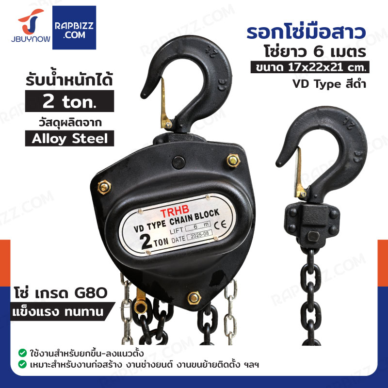 TRHB รอกโซ่มือสาว รอกสามเหลี่ยม 2 ตัน โซ่ยาว 6 เมตร VD Type สีดำ