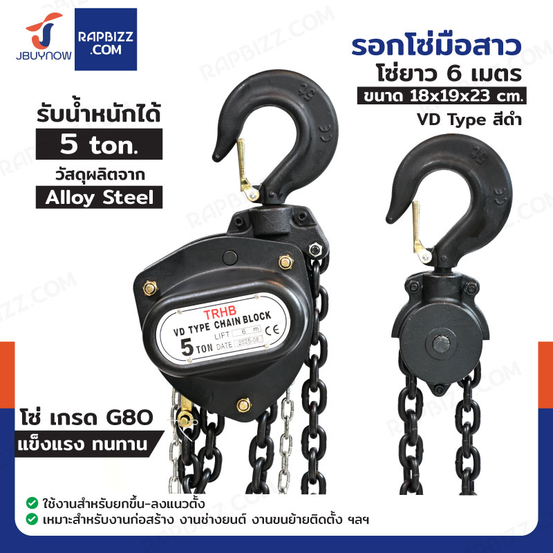 TRHB รอกโซ่มือสาว รอกสามเหลี่ยม 5 ตัน โซ่ยาว 6 เมตร VD Type สีดำ