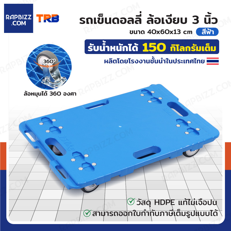 TRB รถเข็นดอลลี่ ล้อเงียบ 3 นิ้ว รับน้ำหนักได้ 150 กิโลเต็ม มาตรฐานโรงงาน แข็งแรงสุดในตลาด