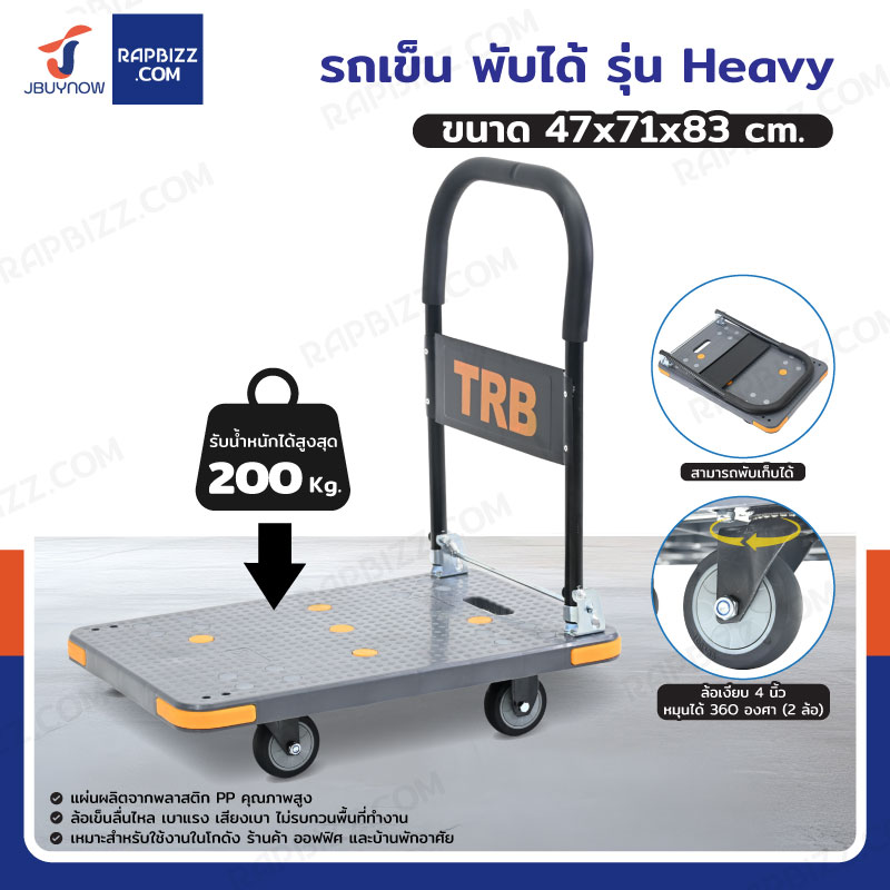 TRB รถเข็นพับได้ รุ่น Heavy มีคานเสริมแรง รับ load 200 KG ล้อเงียบ 4 นิ้ว 47x71x83 CM