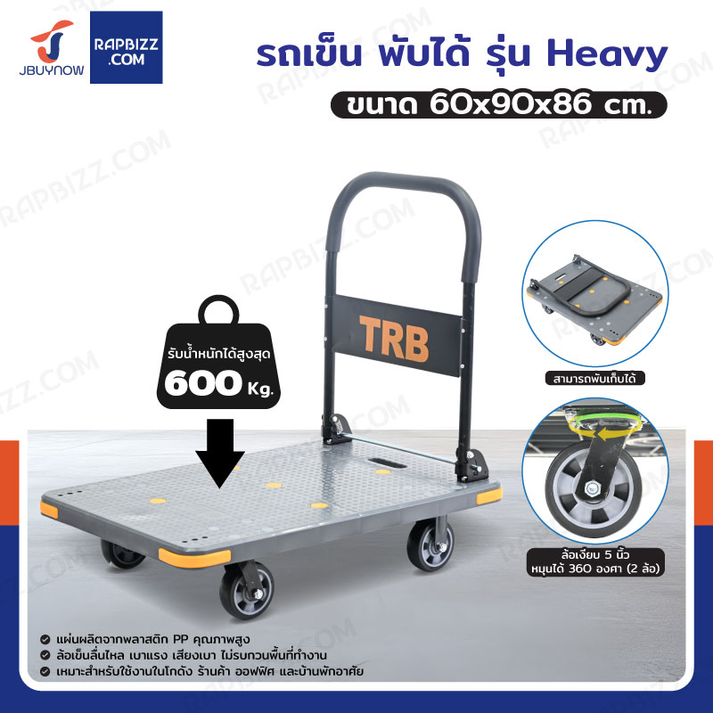 TRB รถเข็นพับได้ รุ่น Heavy มีคานเสริมแรง รับ load 600 KG ล้อเงียบ 5 นิ้ว 60x90x86 CM