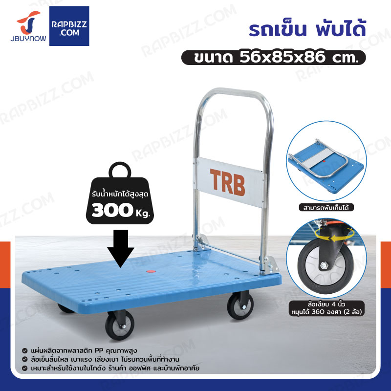 TRB รถเข็นพับได้ มีคานเสริมแรง รับ load 300 KG ล้อเงียบ 4 นิ้ว 56x85x86 CM สีฟ้า