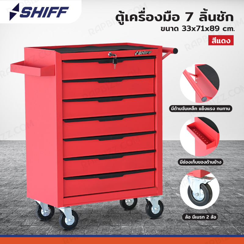 SHIFF ตู้เครื่องมือรถเข็น 7 ลิ้นชัก 33x71x89 cm มีกุญแจล็อค สีแดง TT-247RD