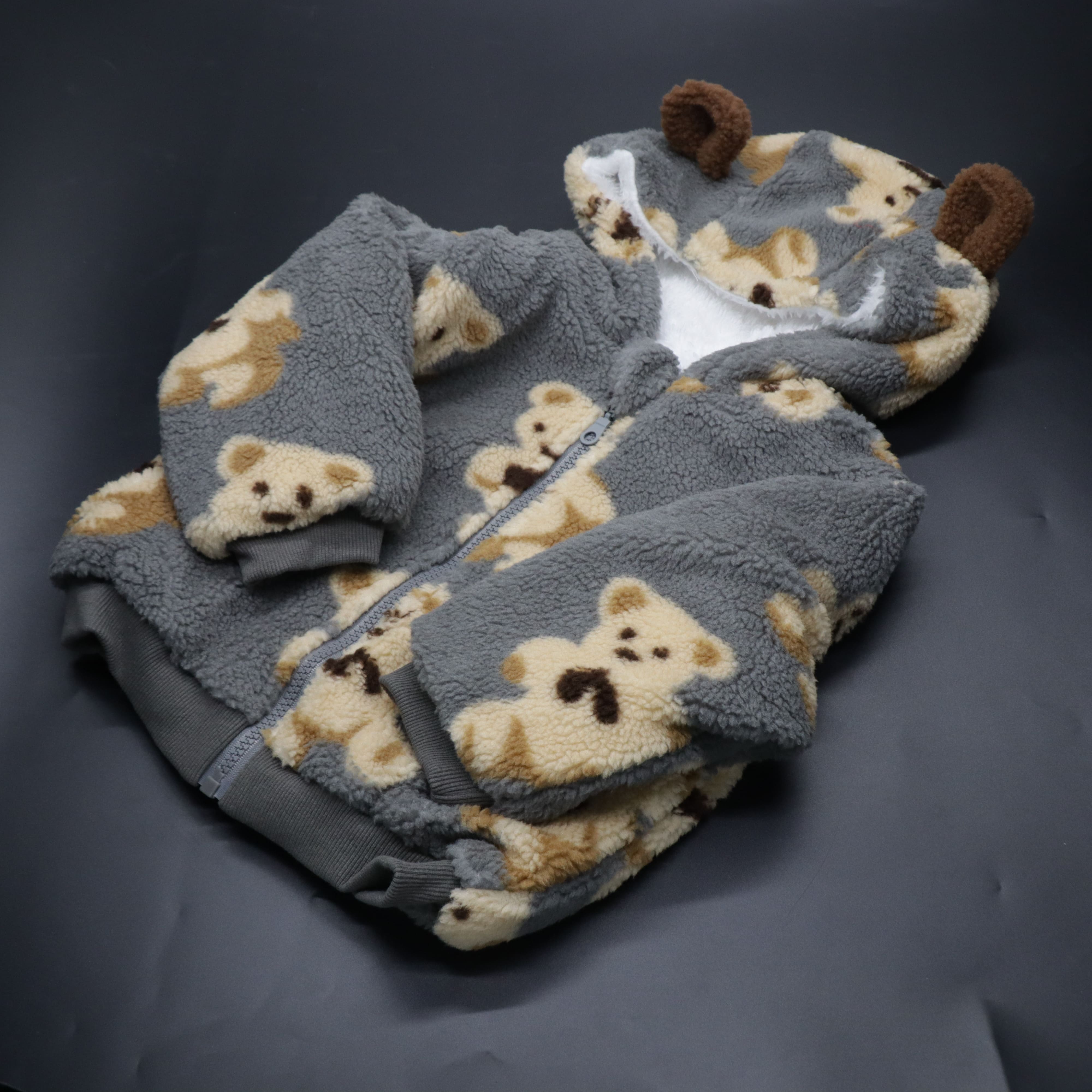 เสื้อแจ็คเก็ตกันหนาวเด็ก คละไซต์ ลาย หมี สีเทา