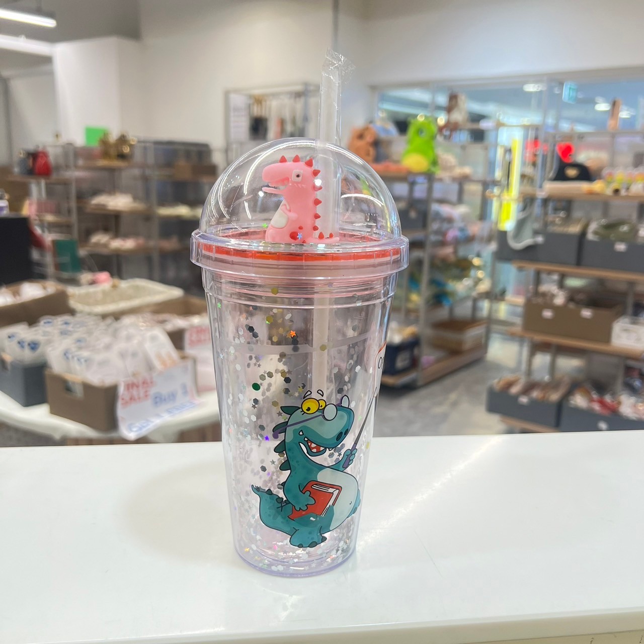 แก้วน้ำพร้อมหลอดดูด 450 ML ลาย ไดโนเสาร์ คละแบบA-14