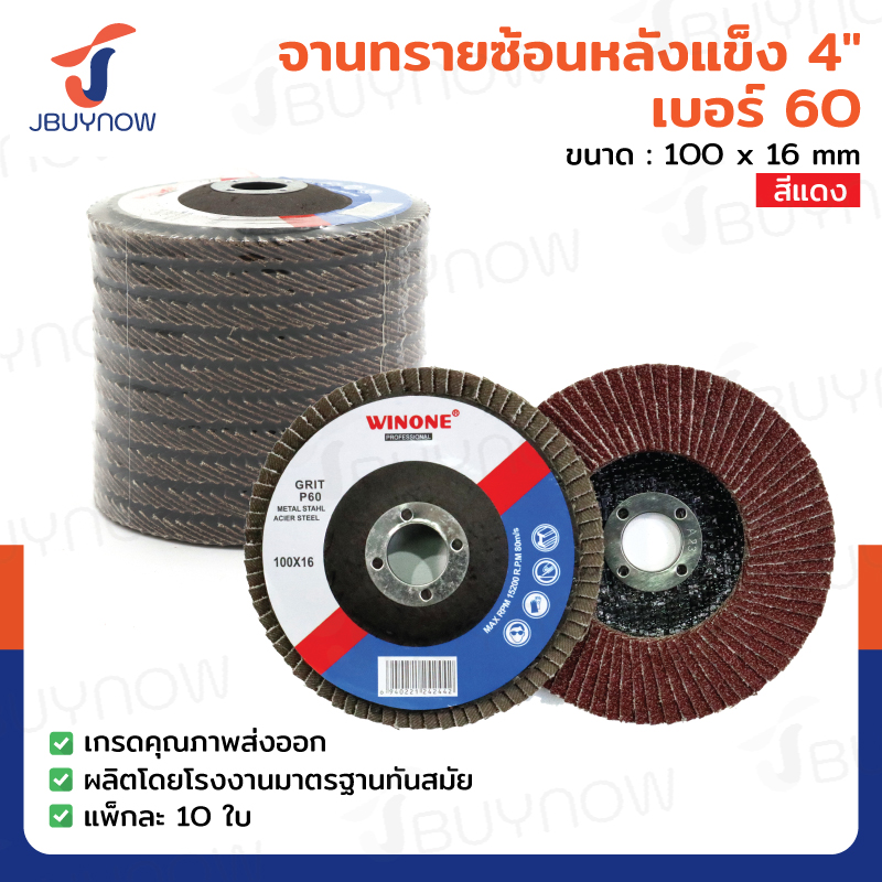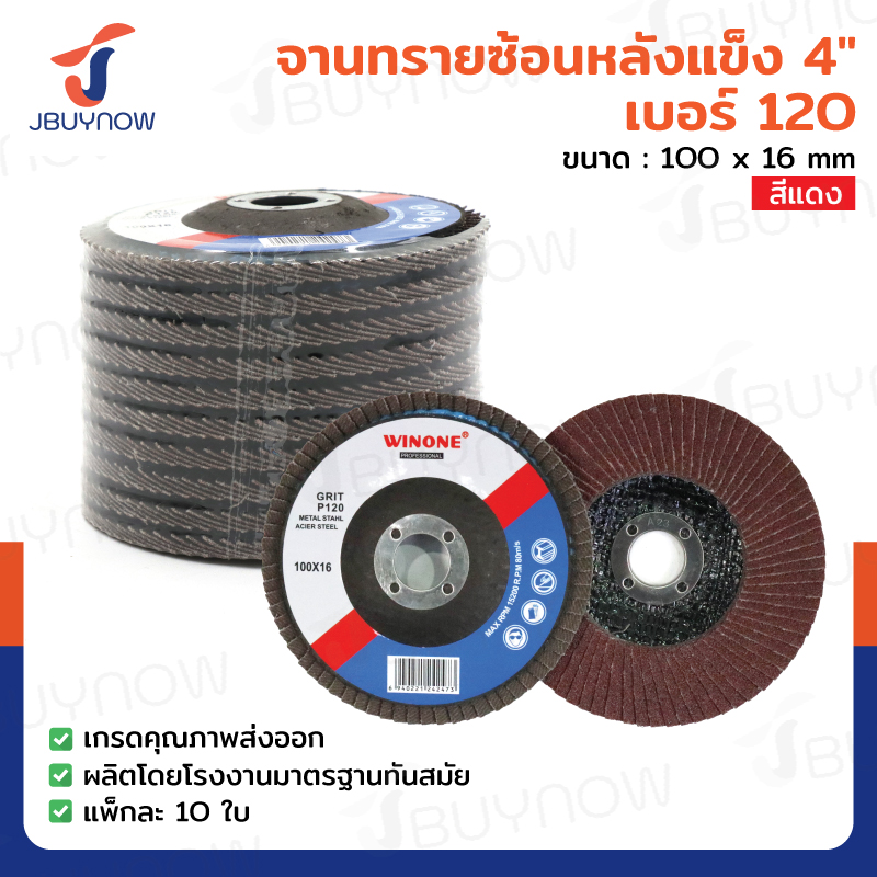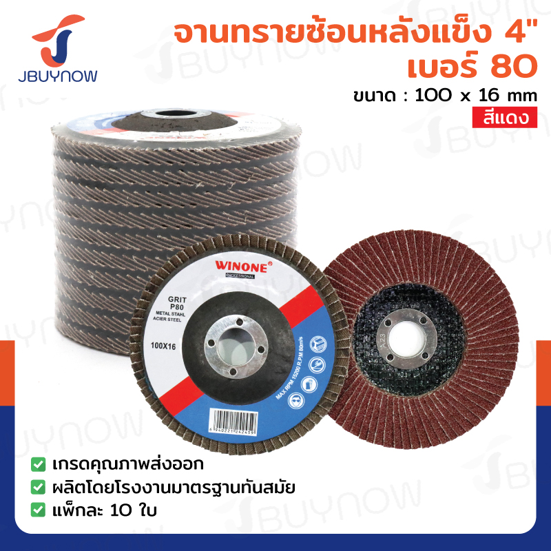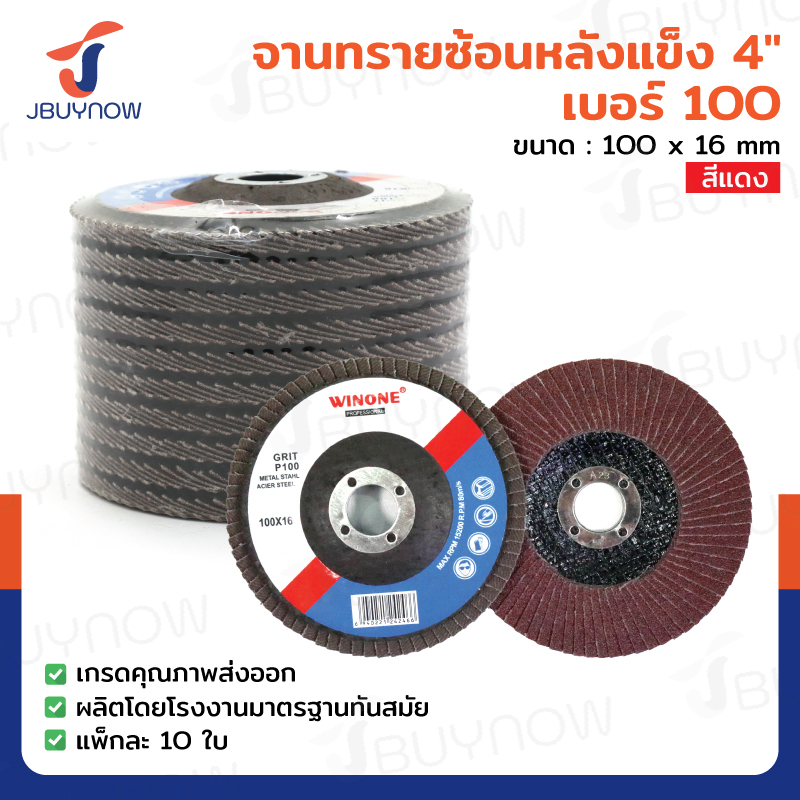 จานทรายซ้อนหลังแข็ง 4 นิ้ว เบอร์ 100 สีแดง แพ็คละ10 แผ่น JBUYNOW TG-017/PACK