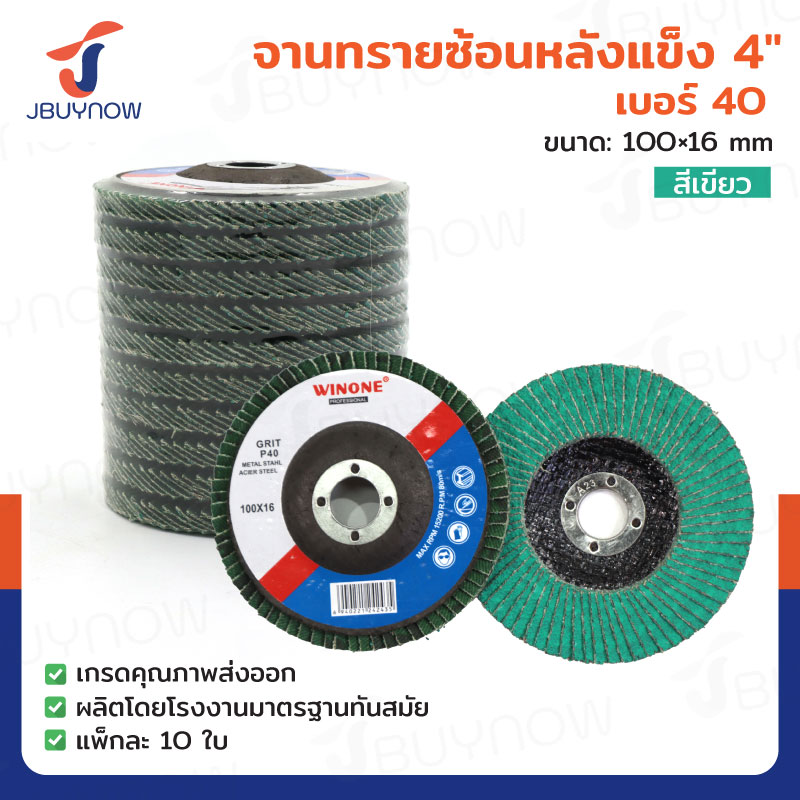 จานทรายซ้อนหลังแข็ง 4 นิ้ว เบอร์ 40 สีเขียว แพ็คละ 10 แผ่น JBUYNOW TG-019/PACK