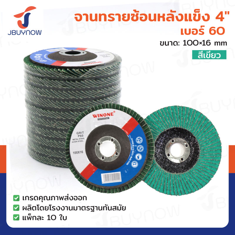 จานทรายซ้อนหลังแข็ง 4 นิ้ว เบอร์ 60 สีเขียว แพ็คละ 10 แผ่น JBUYNOW TG-020/PACK