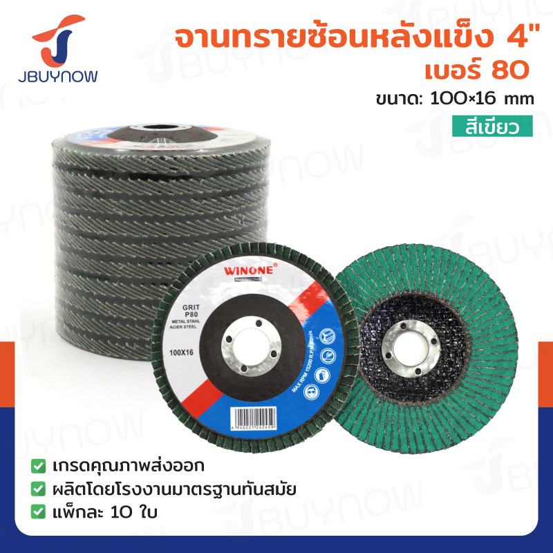 จานทรายซ้อนหลังแข็ง 4 นิ้ว เบอร์ 80 สีเขียว JBUYNOW TG-021