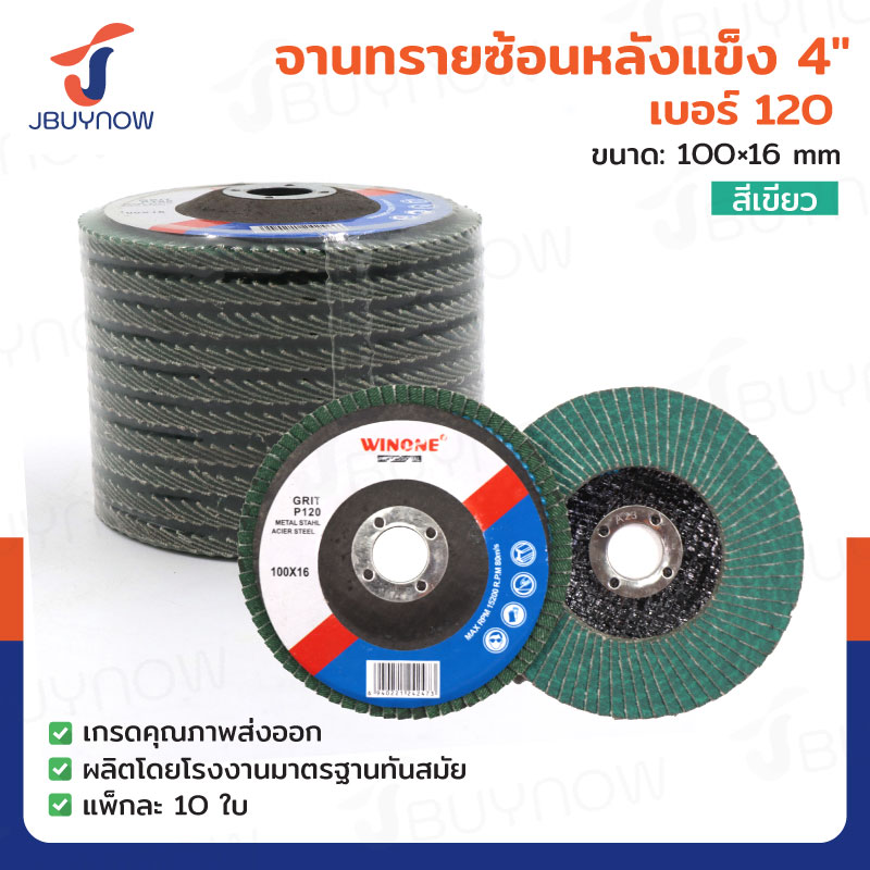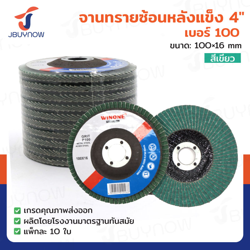 จานทรายซ้อนหลังแข็ง 4 นิ้ว เบอร์ 100 สีเขียว แพ็คละ 10 แผ่น JBUYNOW TG-022/PACK