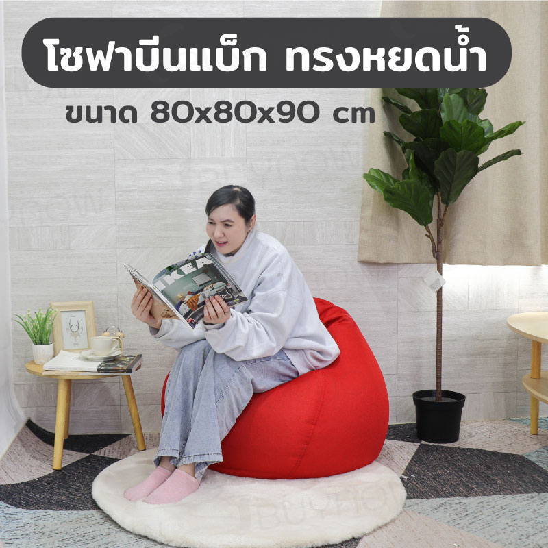 โซฟาบีนแบ็ก เก้าอี้เม็ดโฟม ทรงหยดน้ำ 80x80x90 ซม. สีแดง KY023