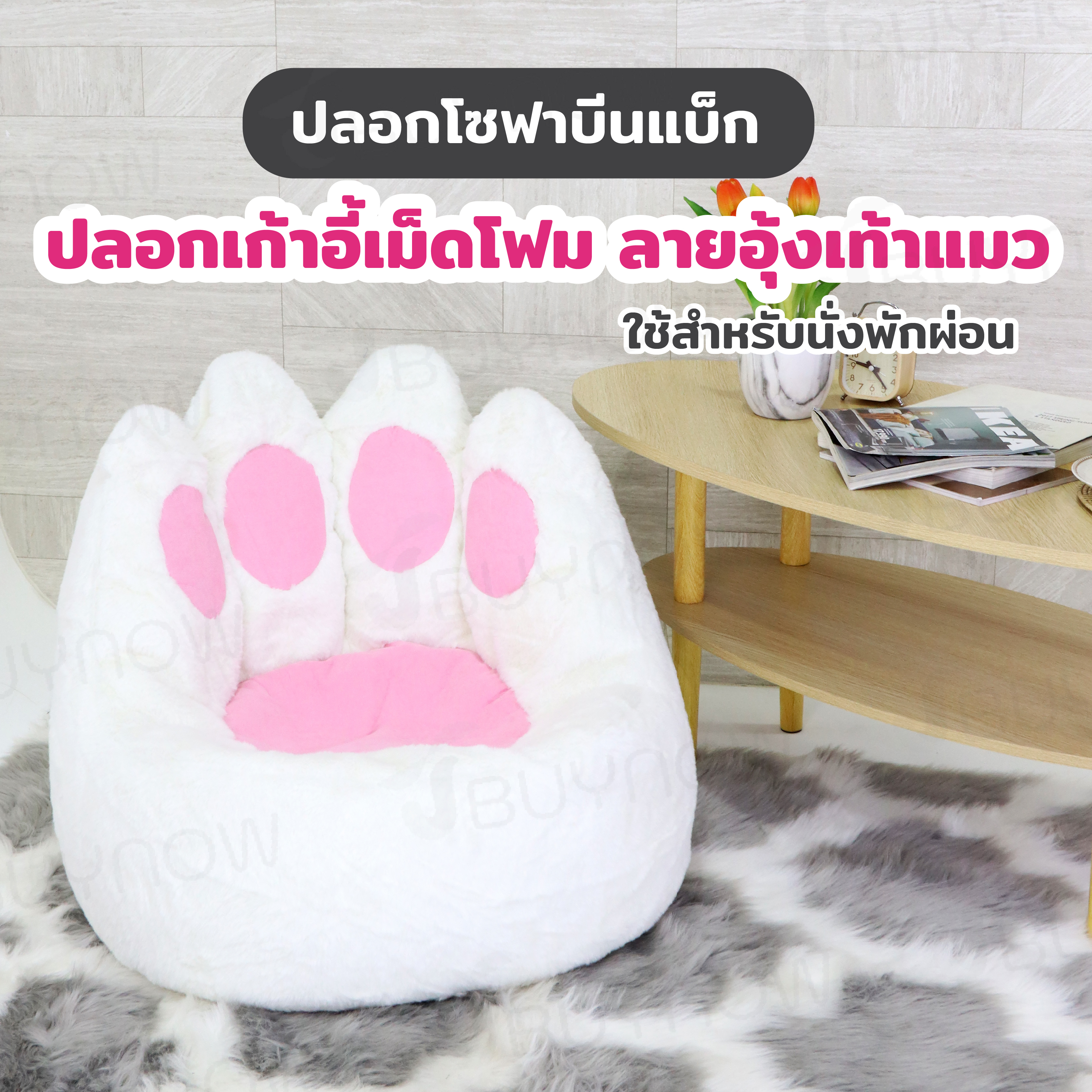 โซฟาบีนแบ็ก เก้าอี้เม็ดโฟม ลาย อุ้งเท้าแมว สีขาว RB230801-2