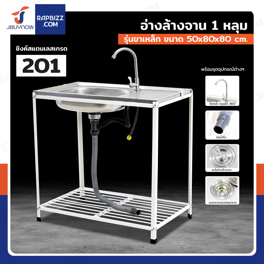 ซิงค์ล้างจาน1หลุม 1ที่คว่ำจาน+1 ชั้นวางใต้ซิงค์ SUS201 60x60x120 ซม. JBUYNOW TRB RB230531-1