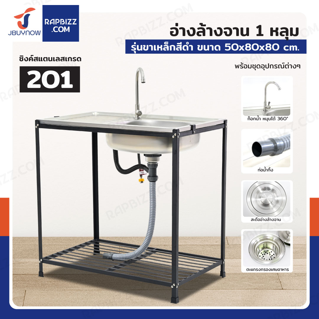ซิงค์สแตนเลส 201 อ่างล้างจาน 1 หลุม รุ่นขาเหล็กสีดำ 50x80x80 cm