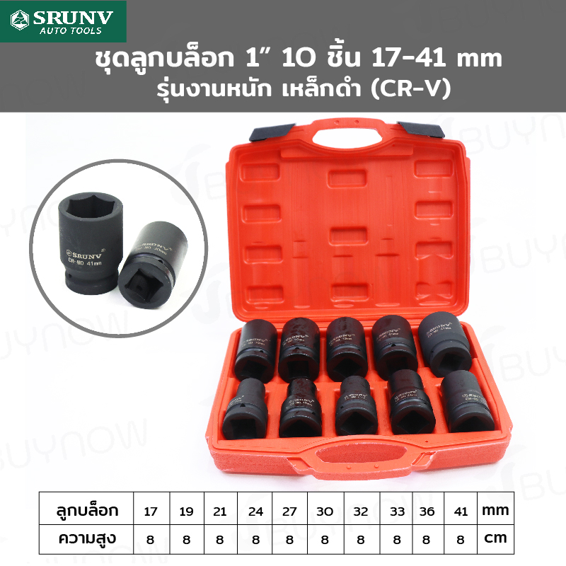 ชุดลูกบล็อก 1 นิ้ว 10 ชิ้น 17-41MM งานหนัก เหล็ก ดำ CR-V JBUYNOW SRUNV Zx-TZGJ011