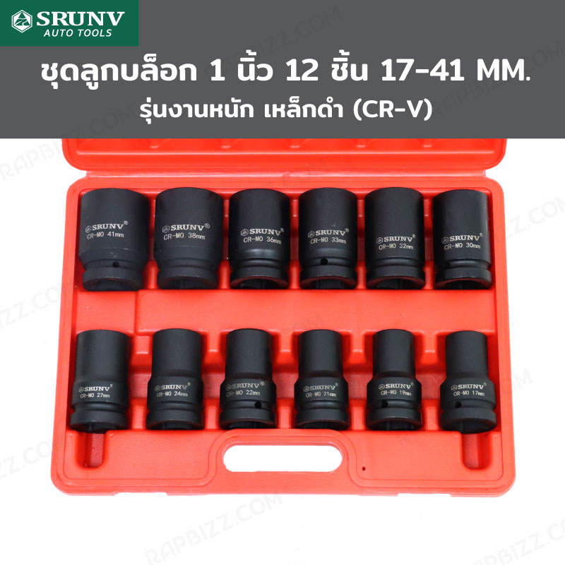 ชุดลูกบล็อก 1 นิ้ว 12 ชิ้น 17-41MM งานหนัก เหล็ก ดำ CR-V JBUYNOW SRUNV Zx-TZGJ012