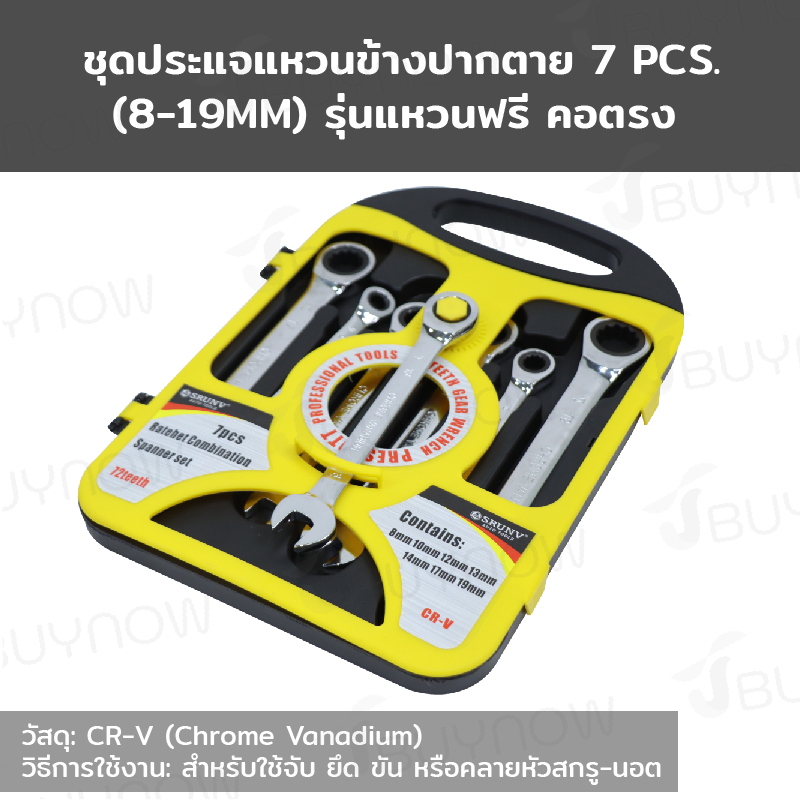 ชุดประแจ แหวนข้างปากตาย 7 ชิ้น แหวนฟรี คอตรง เบอร์ 8-19 MM CR-V RB230601-23