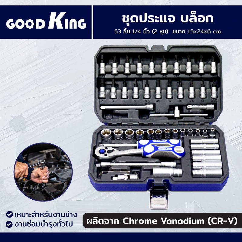 ชุดประแจ บล็อก 53 ชิ้น 1/4 นิ้ว (2 หุน) CR-V GOODK JBUYNOW C-10053