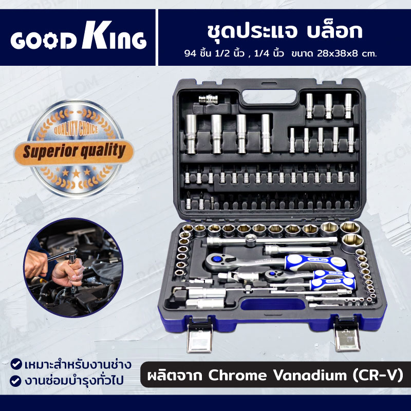 ชุดประแจบล็อก 94 ชิ้น 1/2 นิ้ว ,1/4 นิ้ว (CR-V) GOODKING JBUYNOW B-10094