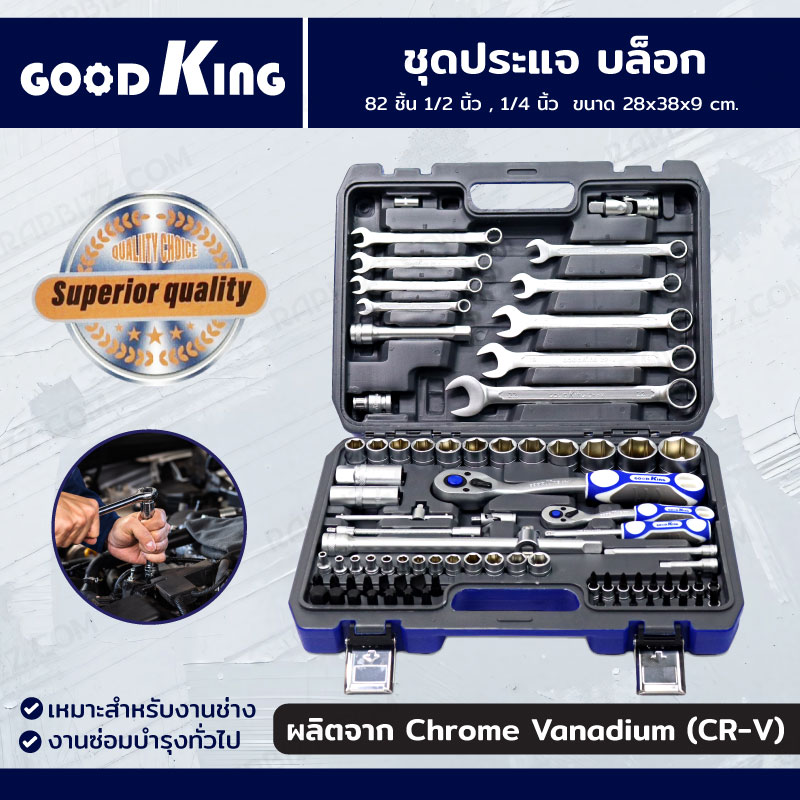 ชุดประแจ บล็อก 82 ชิ้น 1/2 นิ้ว ,1/4 นิ้ว CR-V GOODK JBUYNOW B-10082