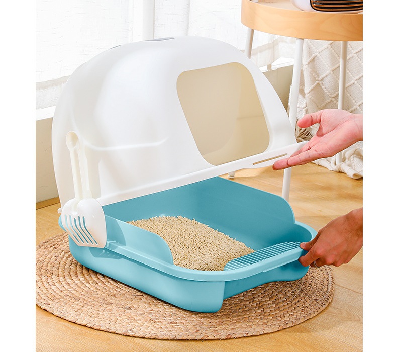 ห้องน้ำแมว กระบะทรายแมว ทรงโดม 36x48x38 ซม. สีฟ้า STP210617-10BL