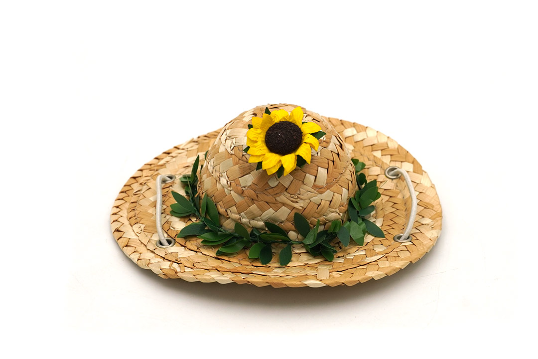 หมวกสัตว์เลี้ยง หมวกฟางดอกทานตะวัน SIZE S เส้นผ่านศูนย์กลาง 13 ซม. STP210617-11S