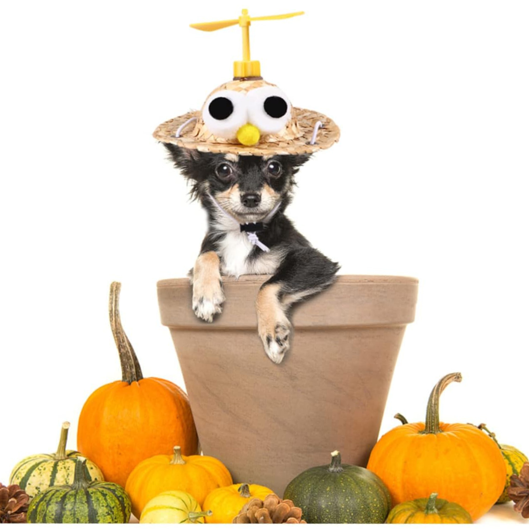 หมวกสัตว์เลี้ยง หมวกฟางแมลงปอเหลือง เส้นผ่านศูนย์กลาง 13 ซม. STP210617-12YE