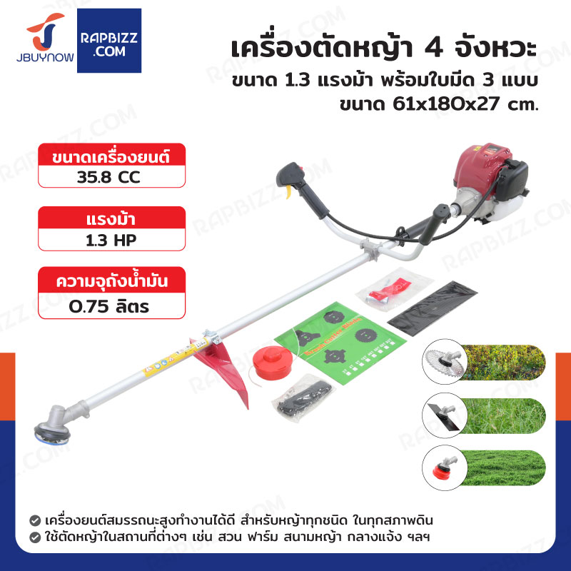 เครื่องตัดหญ้า 4 จังหวะ 1 สูบ 1.3 แรงม้า พร้อมใบมีด 3 แบบ HTT HT35